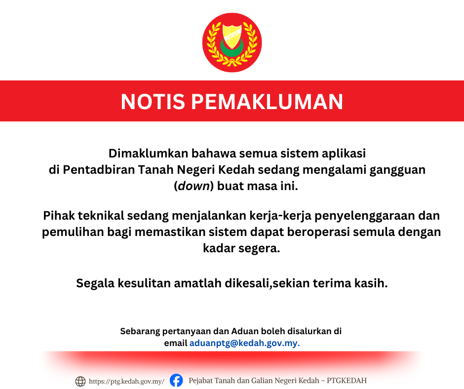 Copyright 2024@ Bahagian Teknologi Maklumat & Komunikasi Negeri Kedah Dengan Kerjasama Pejabat Pengarah Tanah Dan Galian Negeri Kedah