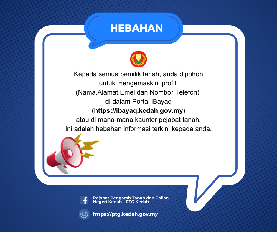 Copyright 2024@ Bahagian Teknologi Maklumat & Komunikasi Negeri Kedah Dengan Kerjasama Pejabat Pengarah Tanah Dan Galian Negeri Kedah