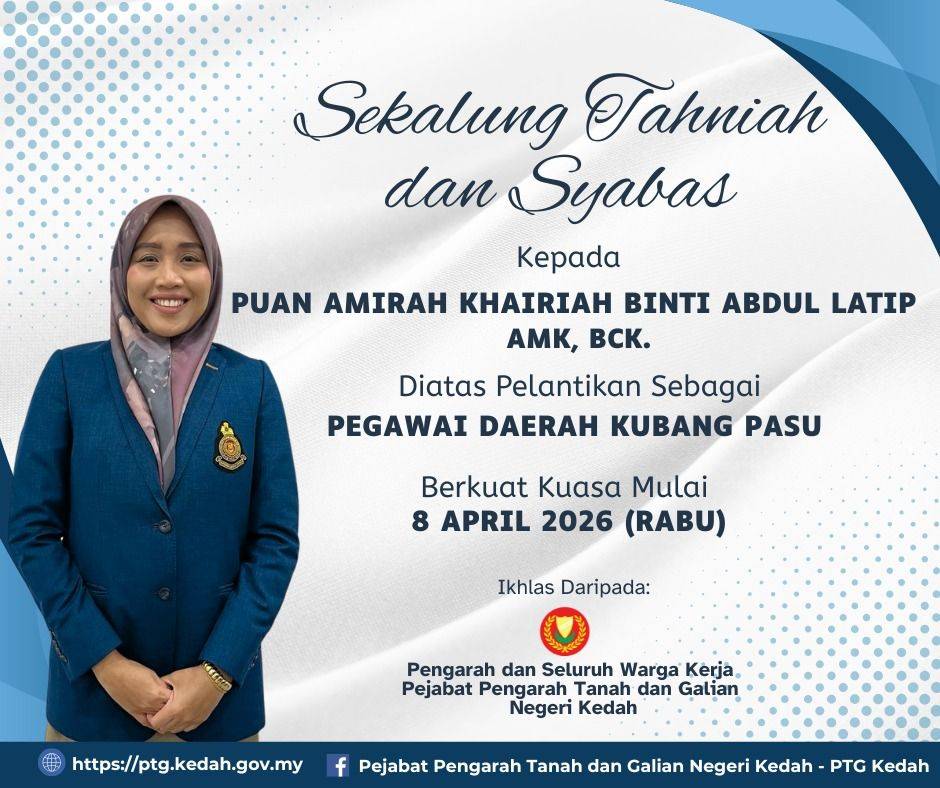 18 JANUARI 2026 (AHAD) – YBhg. Dato’ Pengarah Tanah dan Galian Negeri Kedah, Dato’ Haji Muhamad Arof bin Darus, telah…