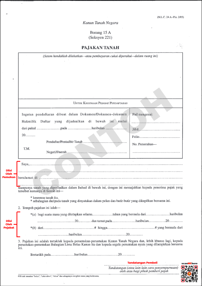 2. Pajakan Tanah (15A)/Pajakan Kecil (15B) :-