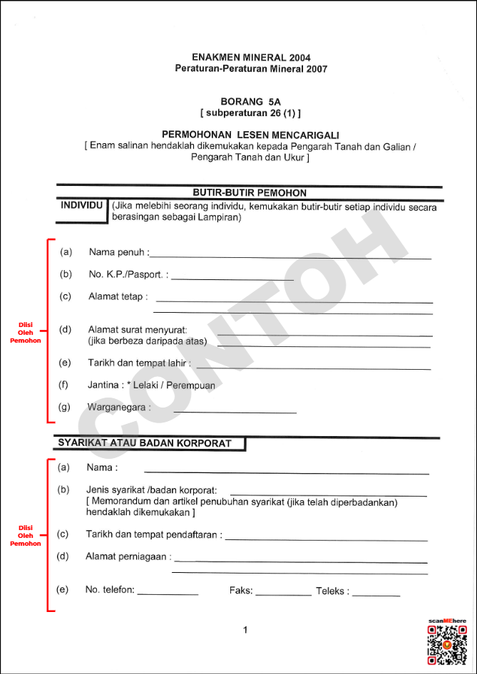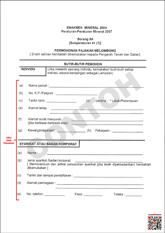 Sila Dapatkan Permohonan di Unit Galian Pejabat Pengarah dan Tanah Negeri Kedah **