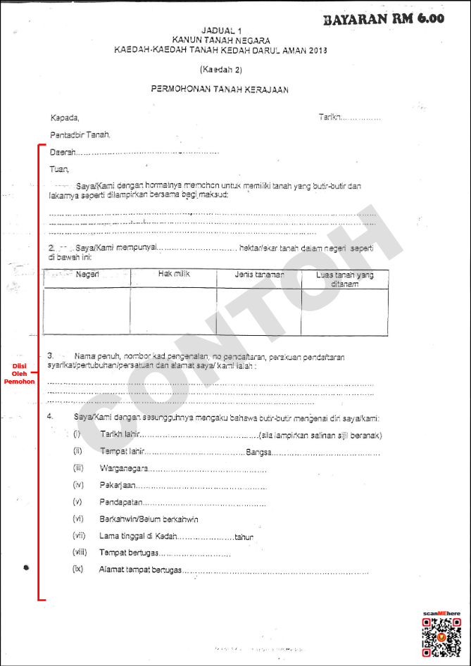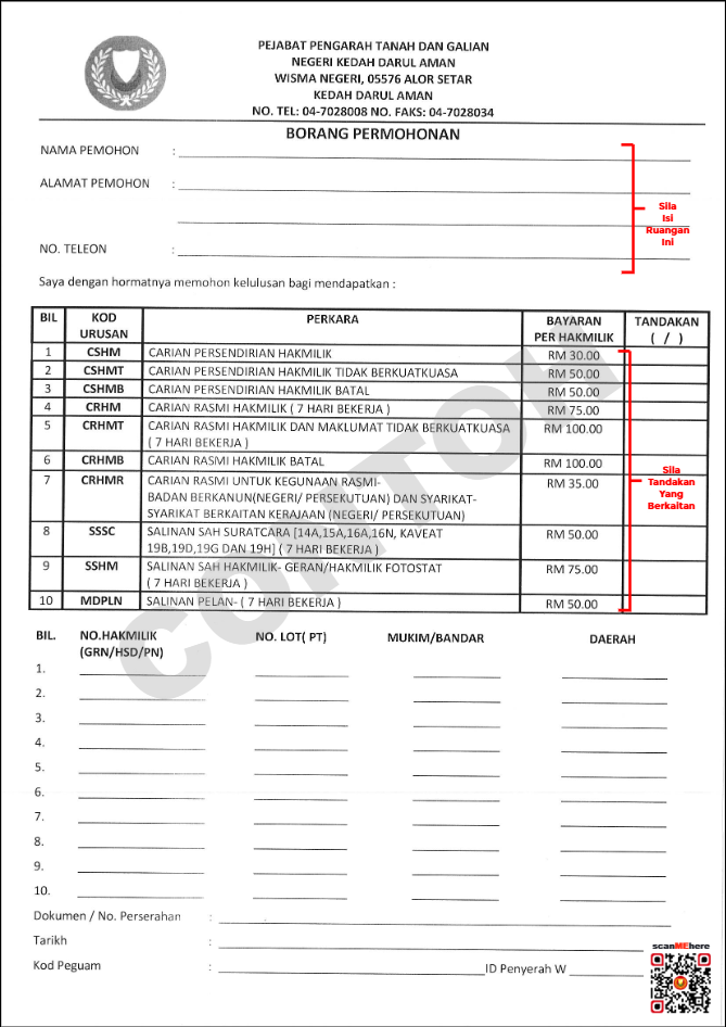 Sila Dapatkan Permohonan di Pejabat Daerah dan Tanah Negeri Kedah berdekatan **