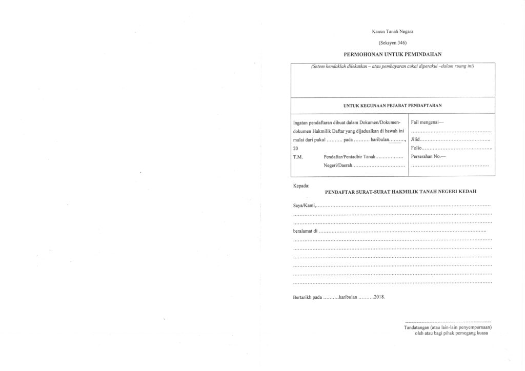 Sila Dapatkan Permohonan di Unit, Pejabat Pengarah Tanah & Galian Negeri Kedah. **